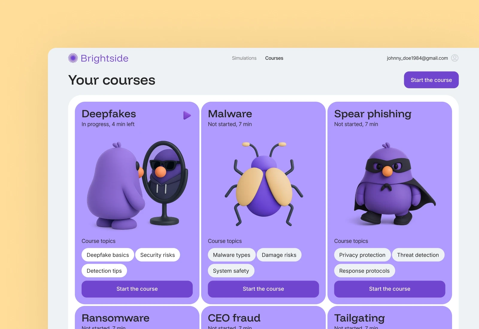 Brightside automatically assigns relevant micro-learning modules based on the specific attack the employee failed. This instant follow-up turns a mistake into a teachable moment without requiring manual intervention from your security team.