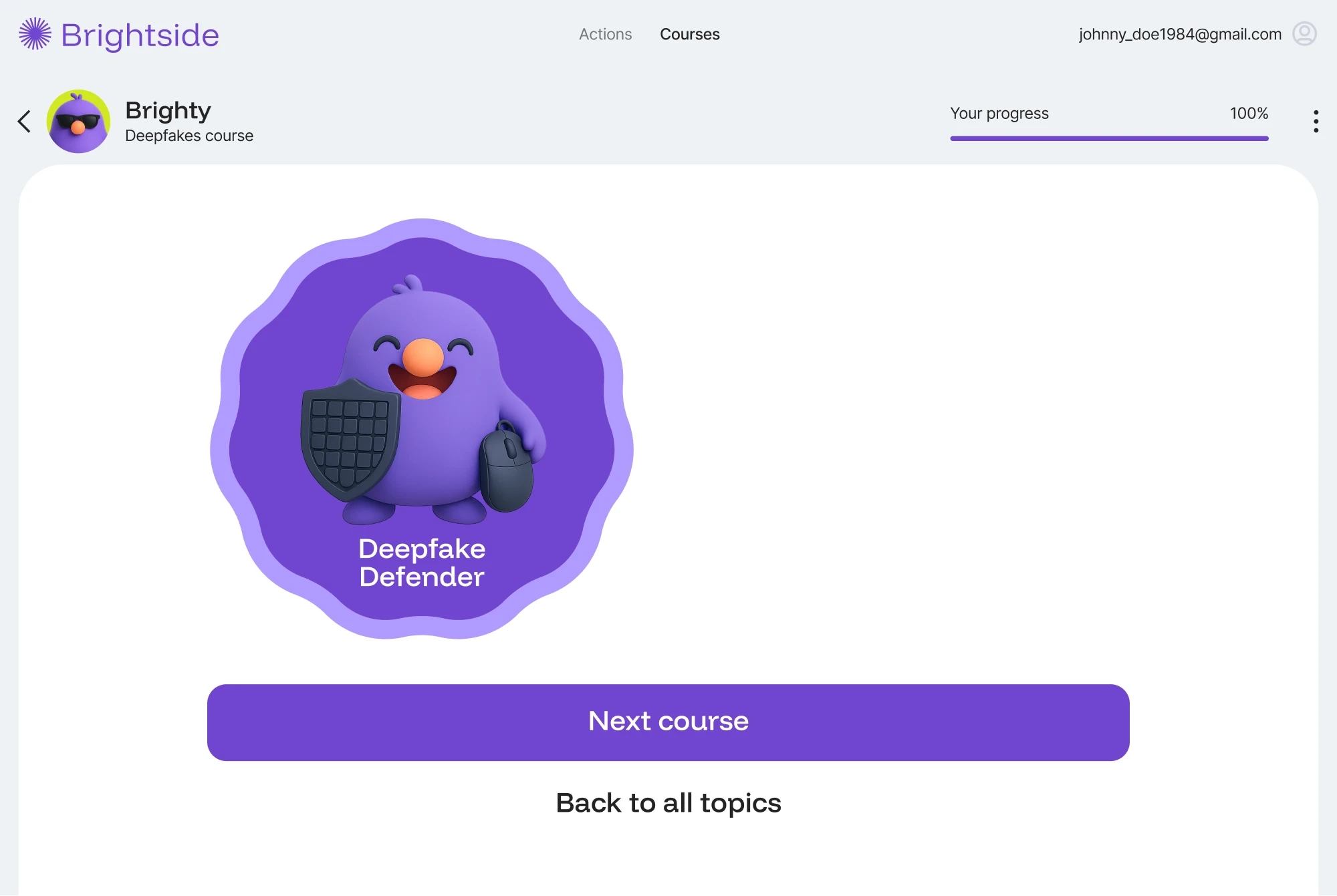 Brightside attribue automatiquement des micro-modules pertinents en fonction de l'attaque spécifique à laquelle l'employé·e a échoué. Ce suivi immédiat transforme l'erreur en opportunité d'apprentissage, sans intervention manuelle de votre équipe sécurité.
